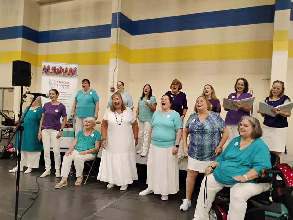 Potomac Harmony Chorus is a vibrant, contemporary, inclusive, and welcoming community of women singers who perform four-part harmony, barbershop style, and are committed to a high level of achievement through teaching, mentoring, personal growth, and performance. Our vision is to entertain, educate, and enrich lives through musical expression while promoting the barbershop art form.